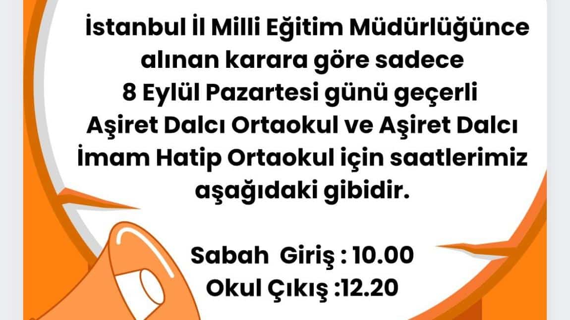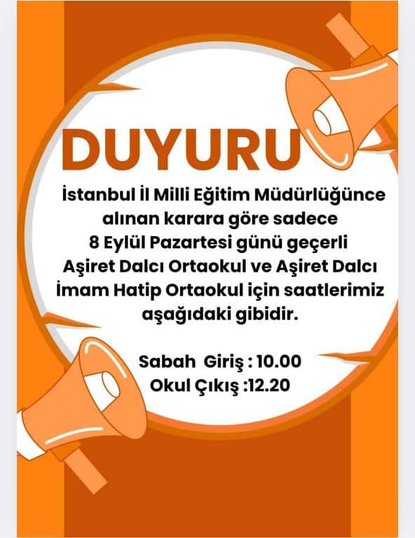 2025-2026 Eğitim-öğretim yılı 1. Günü Ders Giriş-Çıkış Saatleri